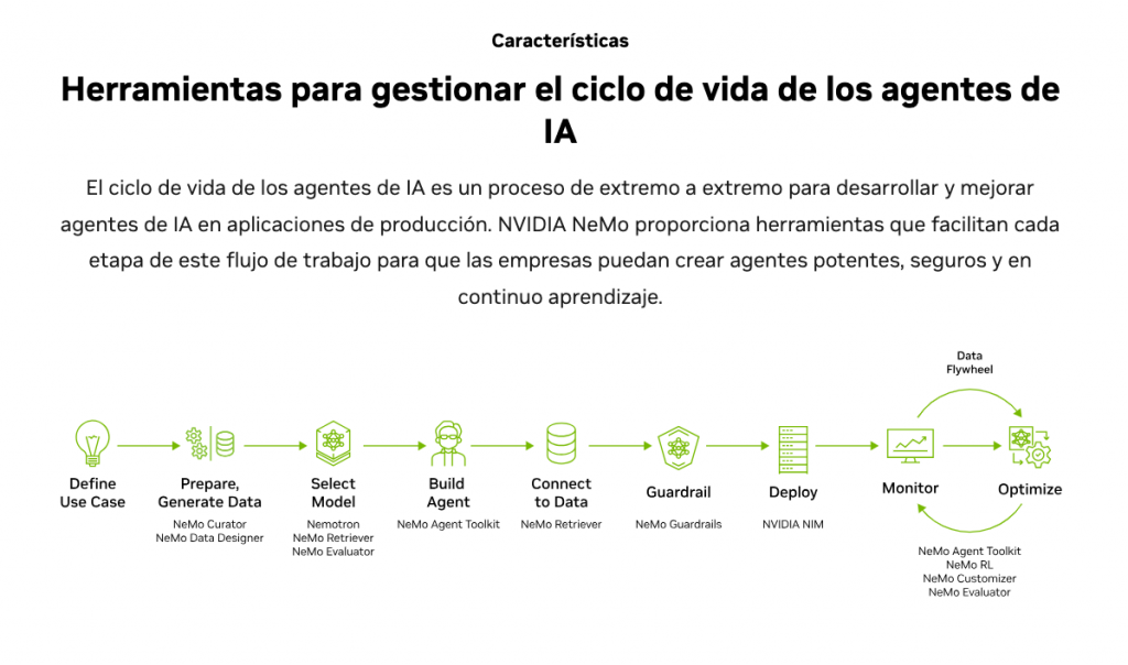 En lugar de limitarse a ofrecer hardware, **NVIDIA está construyendo una plataforma completa para el desarrollo de IA. Esto incluye herramientas para entrenar modelos, optimizar su rendimiento y desplegarlos en producción.